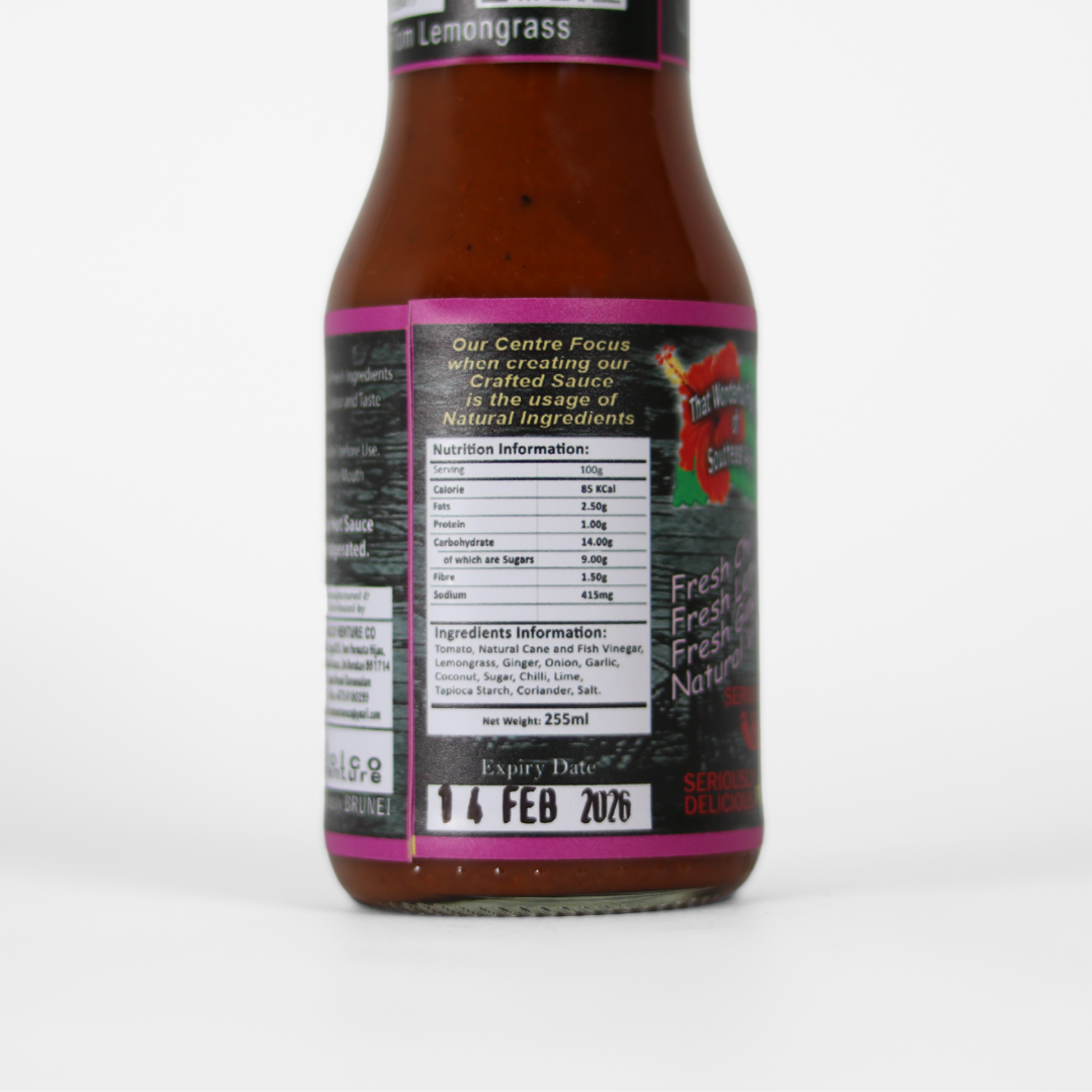 This sauce is intensely hot but it has a good balance of heat, fragrance and umami. The fragrant of lemongrass is prominent, accompanied by a complexity of lime, nuttiness and herbal spices of Southeast Asia. All that and a splash of umami sums it all, and makes this hot sauce a favourite for those asian-dish foodies.